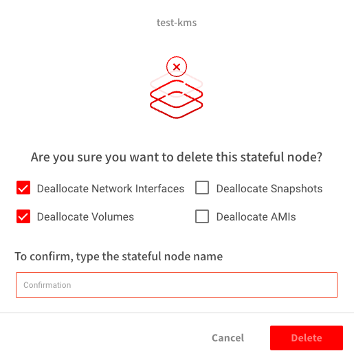 - When you delete a stateful node, you can choose which parts to delete.